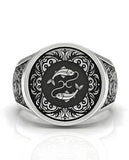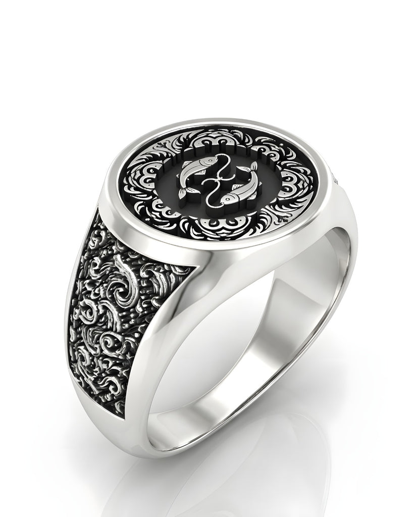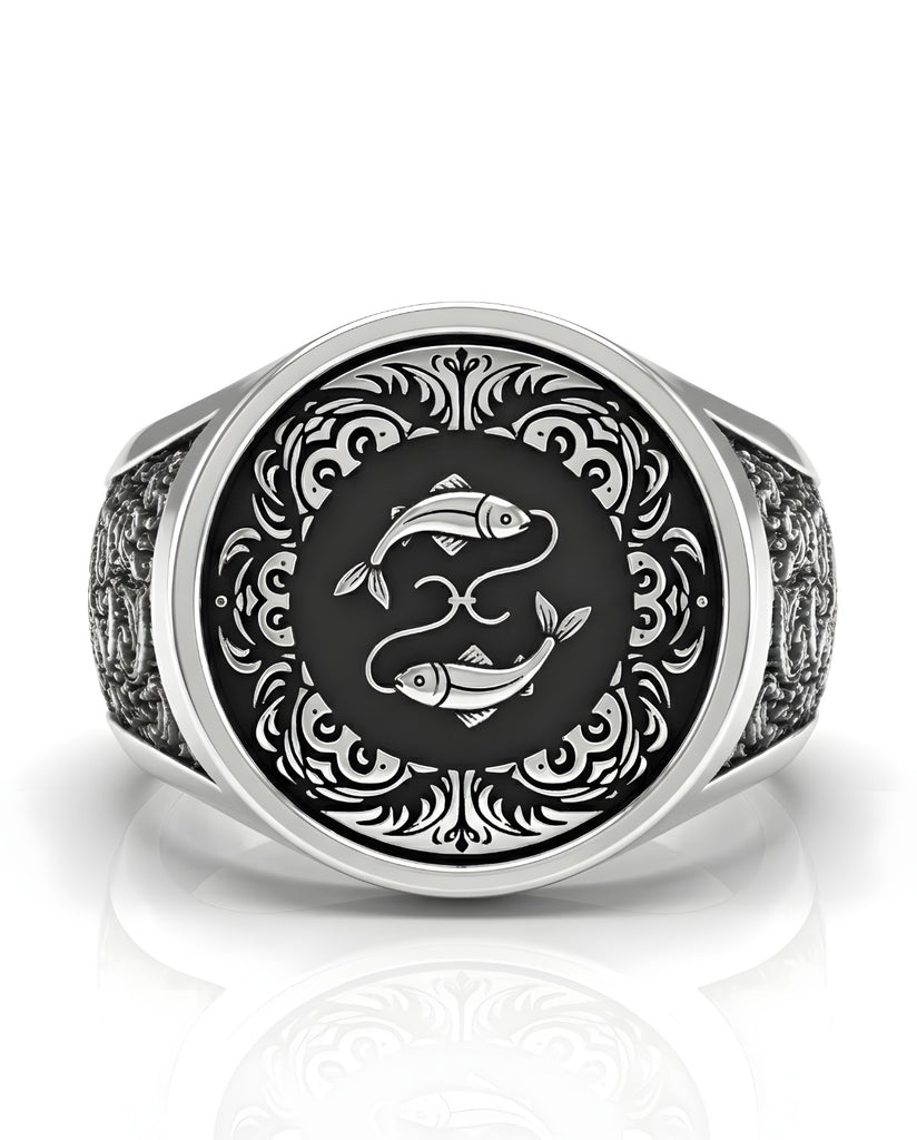 Este anillo se distingue por su fluidez. A diferencia de otros diseños rígidos, aquí todo es movimiento. En el frente, los dos peces nadan en direcciones opuestas, unidos por un cordón de plata que simboliza tu eterna danza entre lo espiritual y lo terrenal. Están enmarcados por arabescos orgánicos que imitan la espuma del mar, sin líneas rectas cortantes.